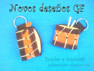 GALEGOUn chaveiro de bombo de fieltro e un chaveiro de tamboril de fieltro que se foron para Sestao....viaxe longo ata o País vasco.